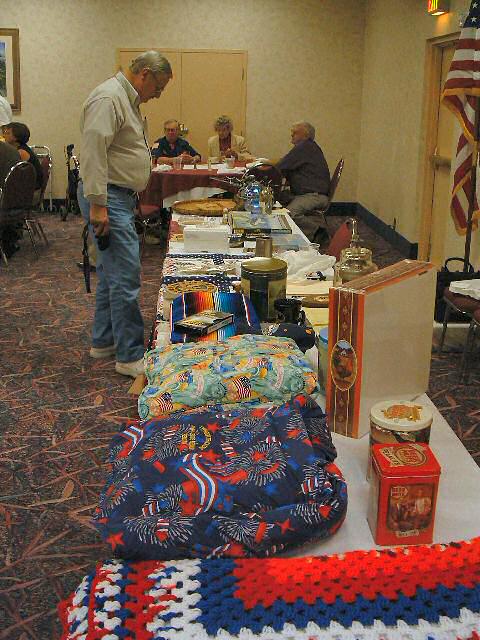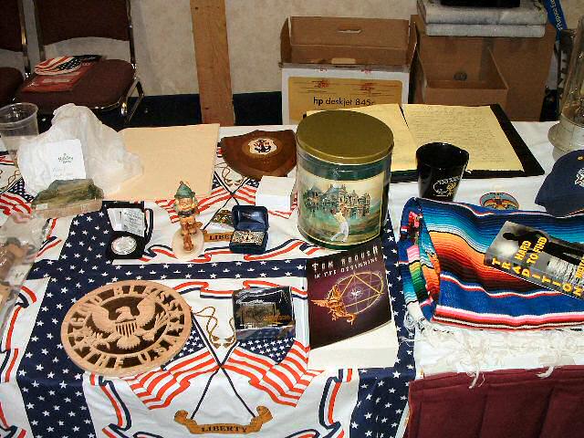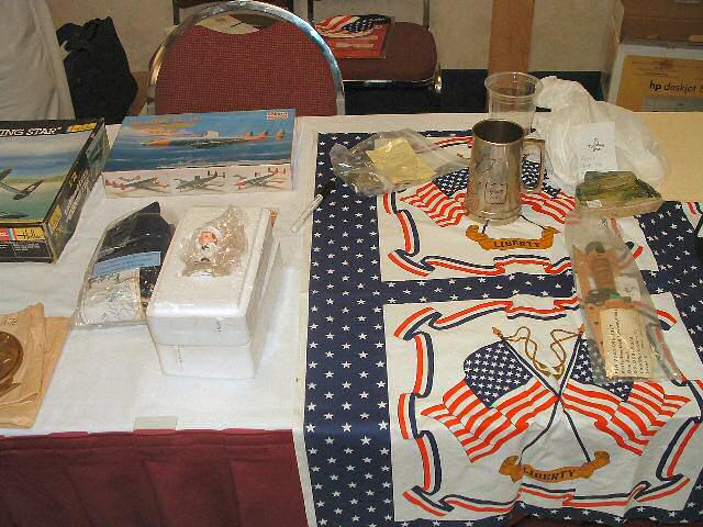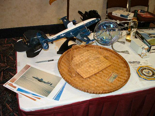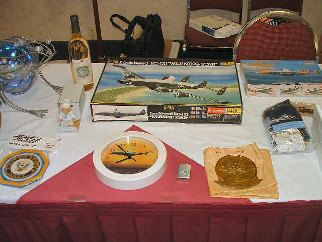 Scale models of the EC-121, a wall clock, plaques, bottles of wine commemorating this reunion and logo cigarette lighters were on the auction block