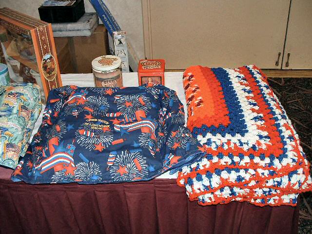 Beautiful afghans and pillow covers made by some of the ladies in the association. Look closely and the reunion info is embroidered, in.