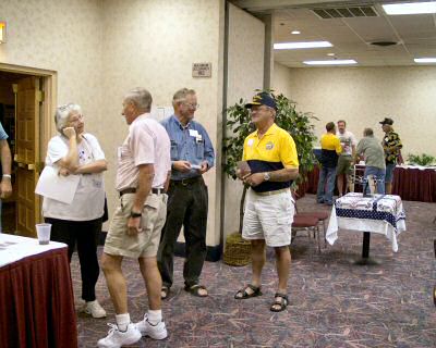 Many members gathered around the registration desk waiting to greet new