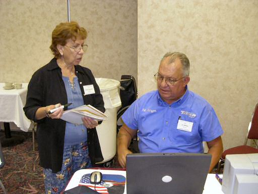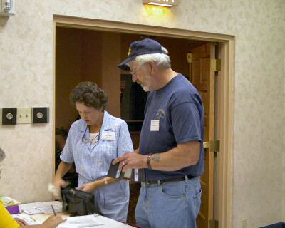 Cathy Tipton and Lowell Buswell at registration desk