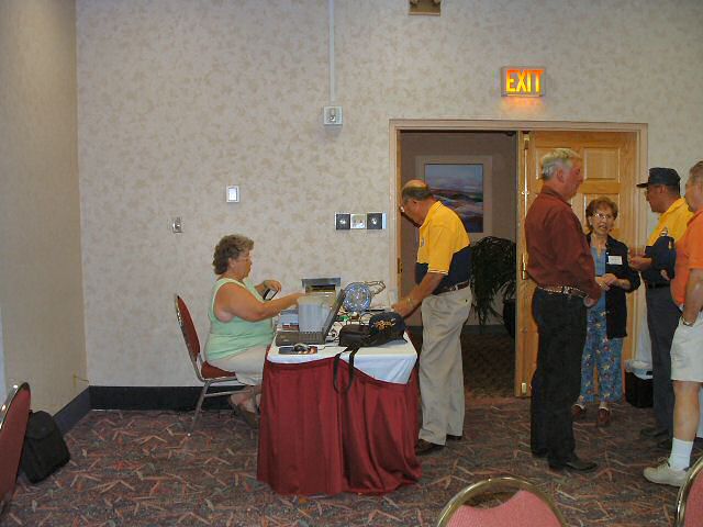 Ed and Sally Metzger with Gay Oulman at registration desk