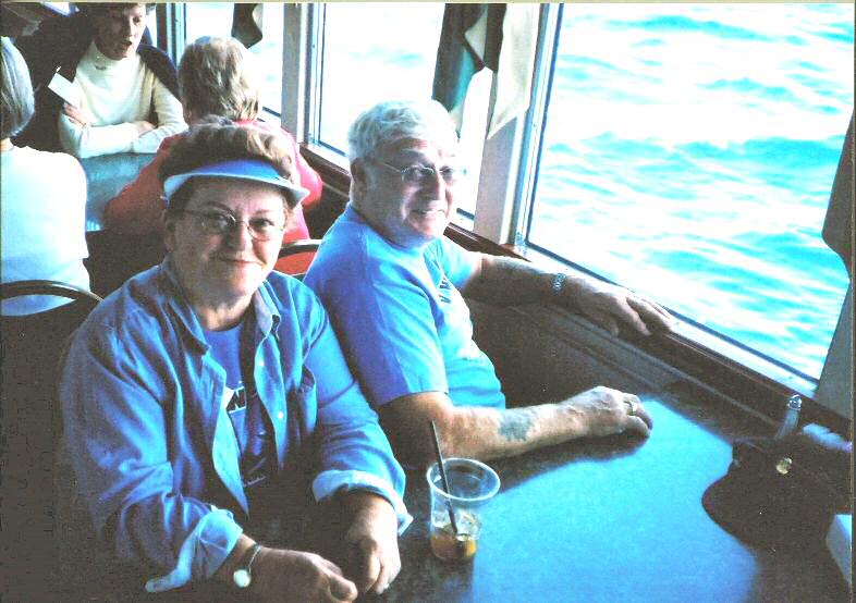 Al and Joann Madsen enjoy refreshments and the view of Lake Tahoe from the MS Dixie.