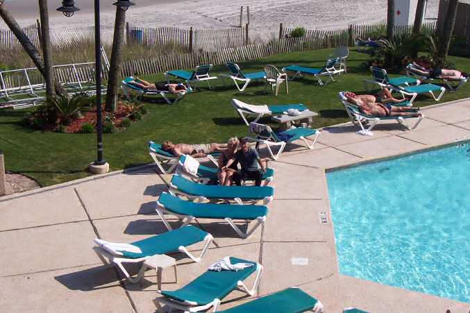 Sydnie and Jack Gergal find a moment to relax poolside.