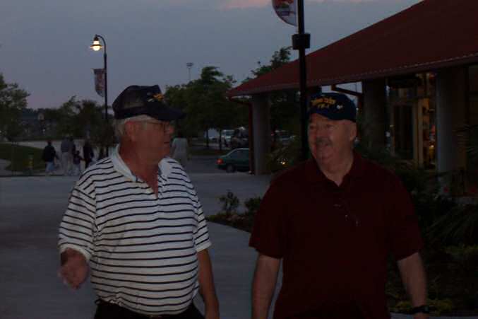 Jerry Brice and Dave Cousineau walking the streets of Myrtle Beach, while the wives are