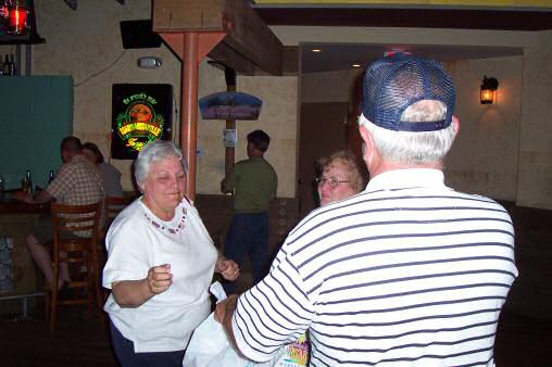Mildred Brice is ready to boogey with her husband Jerry, as Mary Ann Cousineau looks
