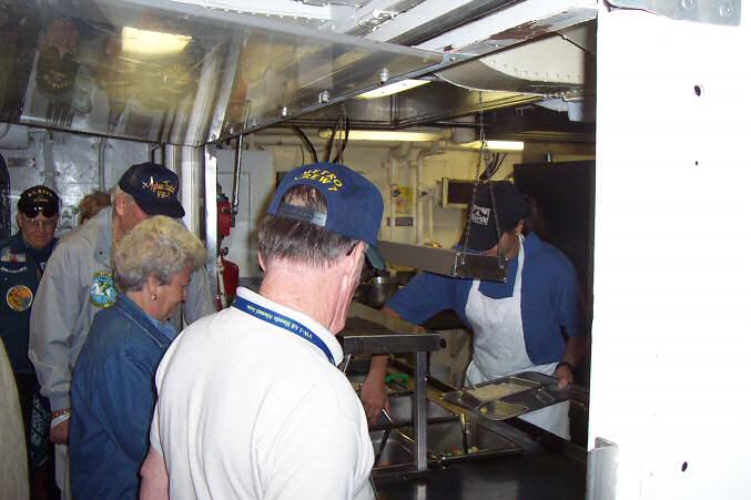 Association members were served lunch on metal plates at CPO mess of the USS Yorktown.