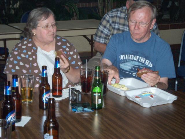 The 2nd picture, Bud Hummel and Larraine Meyers, grab a quick meal.