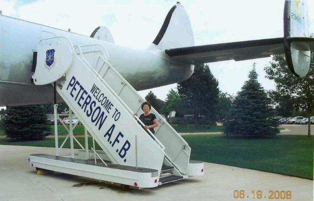 stand in front of an Air Force EC-121.