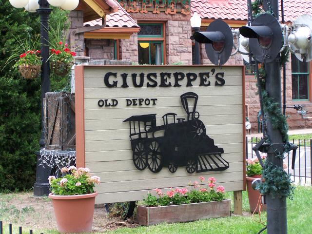 The first 2 pictures on the left announces the locaton of Guisseppe's Old Depot Restaurant, the train engine and coal