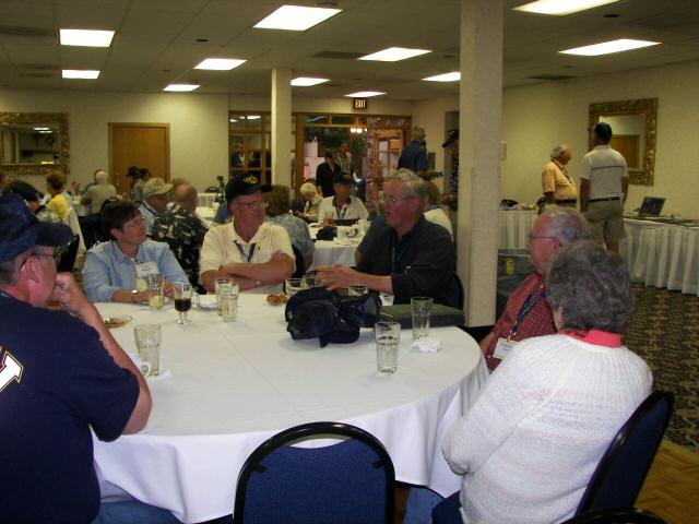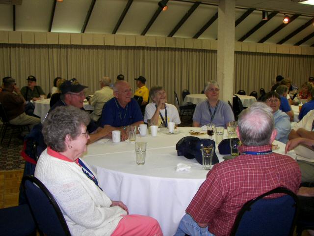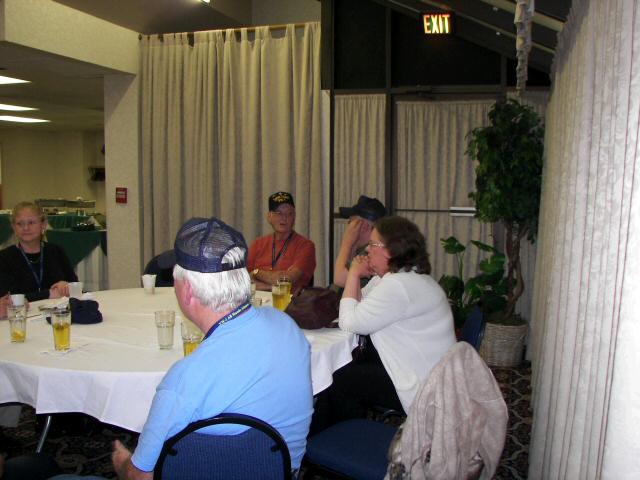 The 2nd picture, seated at the table looking over area attraction pamphlets are Karla Tusing and Jane Bailey, while Lenn Bailey and Lanny Fowler get acquainted