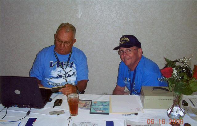 The first picture on the left shows Ed Metzger and Ralph Link behind the registration table