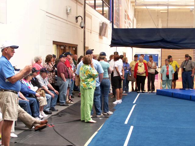 The 3rd picture, shows the reunion attendees in the gymnastic training center.