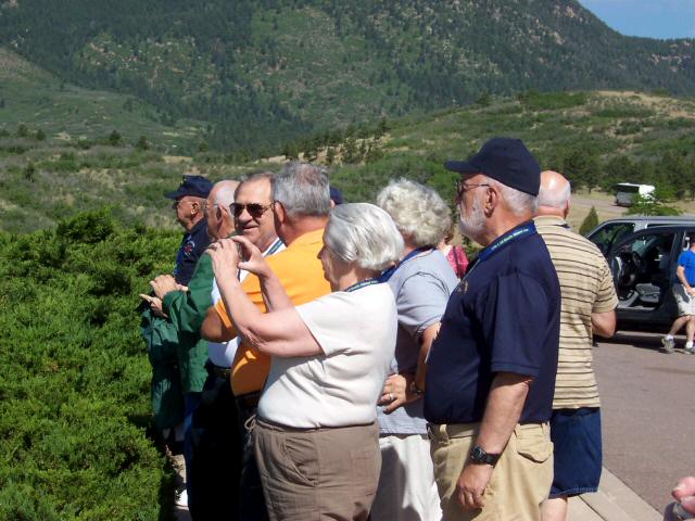 Association members take advantage of an overlook to the main cadet areas of the academy.