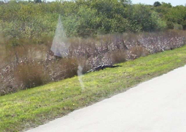 The 2nd. picture, from the left: There was plenty of wild life on the cape. This alligator was on the road to