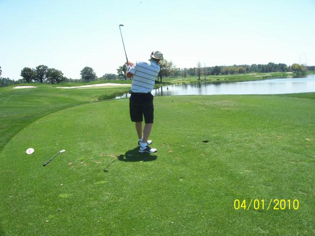 The 4th. picture, from the left: Jack Gergal watches as his ball hits the green.