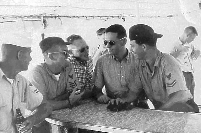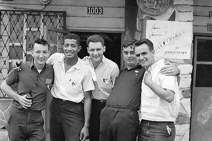Pictured 3rd. from the left: Crew 4 guys in club at NS Sangley Pt. circa July 1967