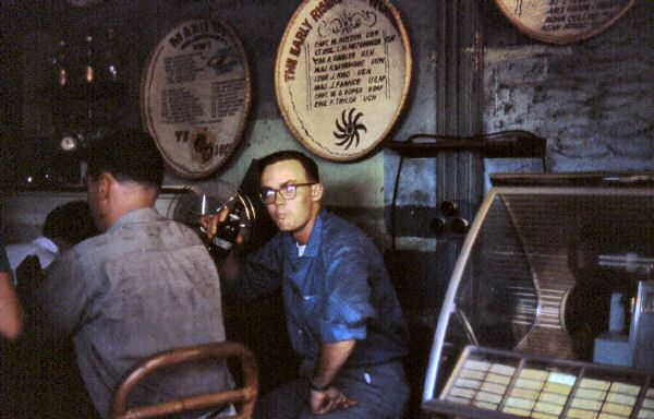 Pictured 3rd. from the left: 3 guys having a cool one in Marie Te's, Cavite City P.I. circa 1970