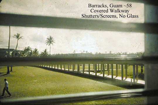 - Pictured on the left: NAS Agana Guam barracks building. circa 1959.