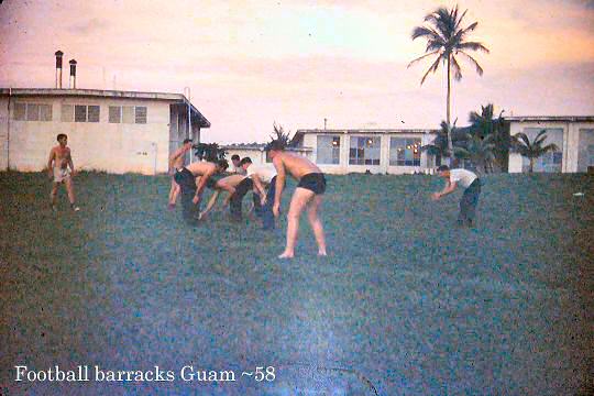- Pictured on the left: Football at VW-1 barracks Guam 58.