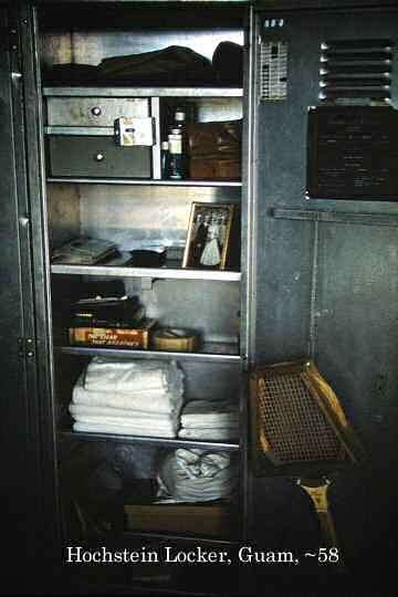 Pictured 4th. from the left: Alan Hochstein locker in VW-1 barracks at NAS Agana Guam 1958.