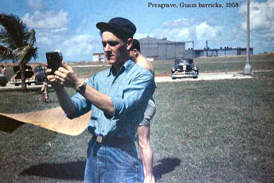Pictured 3rd. from the left: Presgrave at the rear of VW-1 Barracks NAS Agana Guam 58