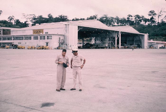 The 3rd picture from the left: Herbert Goebel AD1 and Chief Meza ADC at NAS Cubi Pt. P.I.
