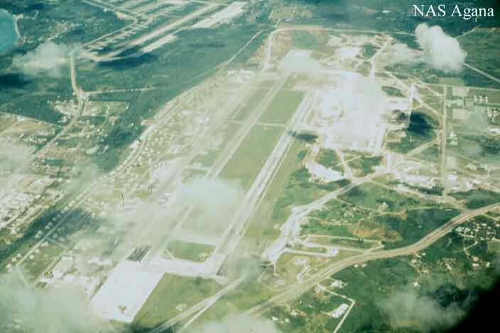 - Aerial views of NAS Agana Guam from about 10,00 feet altitude and WV-2 approaching south end of runway.