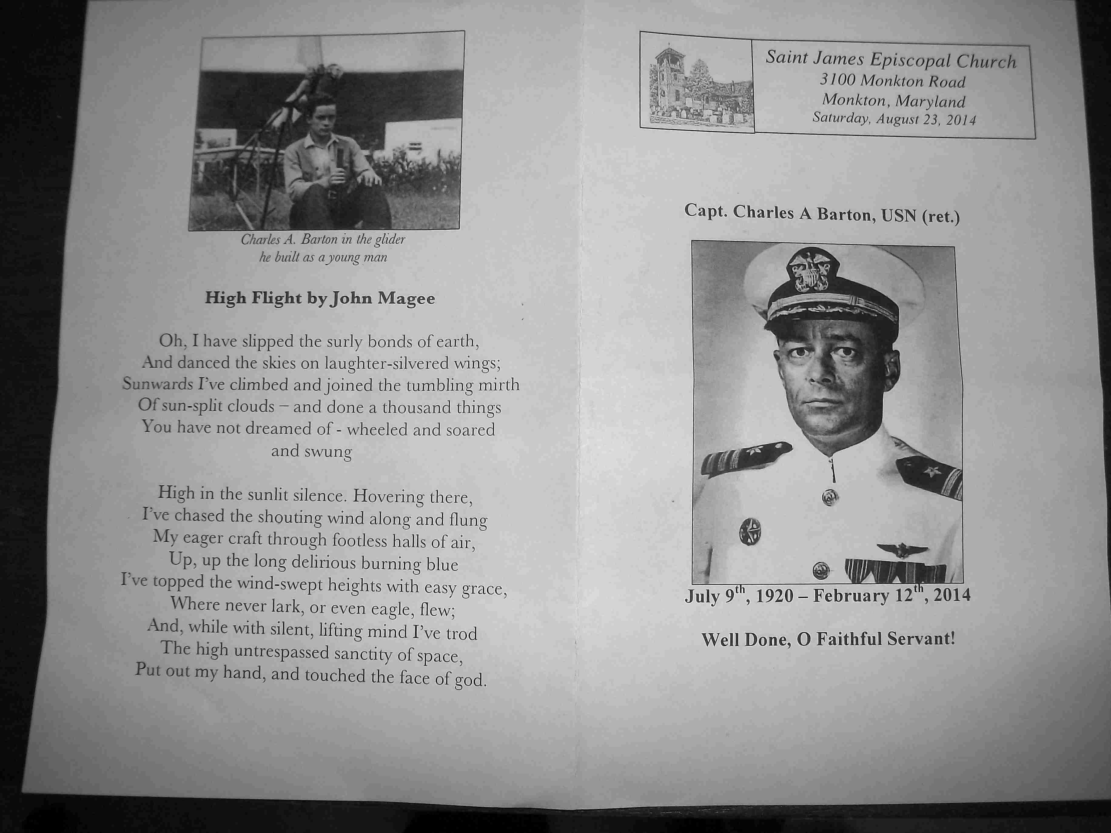 Folks, This past Sat. (Aug. 23 2014) Lucille and I attended a memorial service for Capt. Barton at the St. James Episcopal Church in Monkton, Md. Monkton is located 75 miles North of Wash. DC out in the boondocks. I am not sure I could have found it without a GPS. The Barton's Son, Charlie, is the Senior Pastor of this church and therefore the selection of a location. The Church may be the oldest Episcopal Church in Maryland back to at least the early 1800's. The town of Monkton does not even seem to exist since we did not see a post office, 7/11 or gas station. The Church sits alone along Monkton Road. There were about 75 of us in attendance, many of whom did not know the Skipper but were there to support their Pastor. However, importantly, MaryLee was there and all 4 of the Barton off springs. Their Son from Calif. was back for the first time since the Skipper died and I believe that is what prompted the service at this time. It was a touching Service with a Homily speaking of the Skippers life, beautiful organ music and a communion. At noon, we retreated across the lot to a newer, beautiful activity building for a reception with the Family and a luncheon. I introduced my self to their Kids as the representative on His Squadron VW1. The only other squadron mate that I know of being there was Ernie Racz. We really didn't remember each other and spoke only briefly. Mary Lee looked and seemed great (see attachment) and I am sure that this event helped her in the "closure" process. I have attached a few pictures. Lucille and I are shown with MaryLee and their daughter, Stephanie.