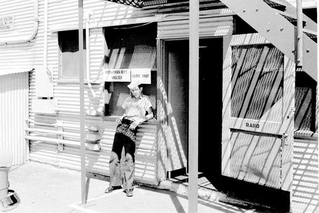 The 4th picture from the left: Unknown sailor (best guess is Arden "Arti" Olsen AL2) standing outside the