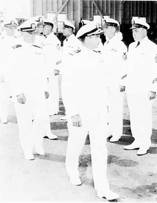 4th picture from the left: Change of command inspection July 1954 Cdr E. A. Luehman is relieved by Cdr. A.