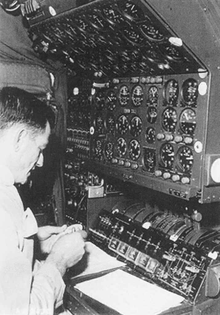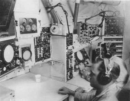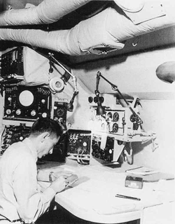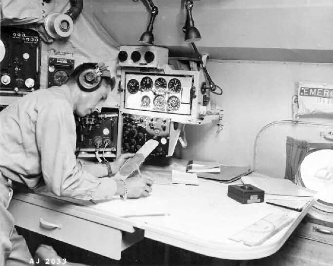The 4th picture from the left: Looking forward from the DRT (Dead Reckoning Table) of a WV-2. Pictured is
