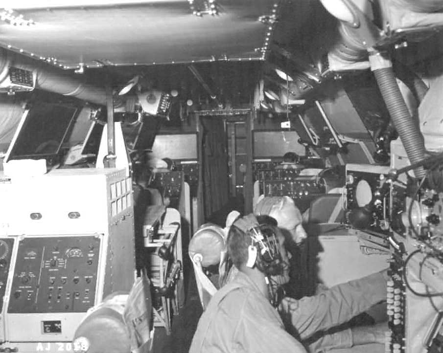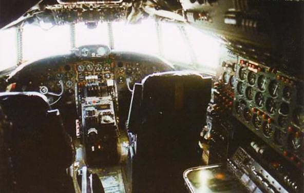 WV-2 Flight Deck Pilots left side Co-pilot right side, flight engineers panal behind co-pilots