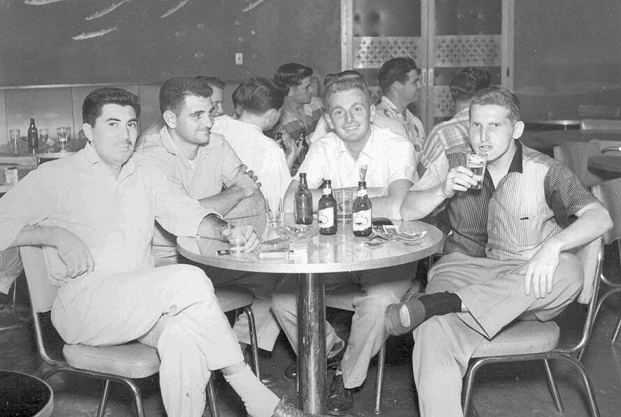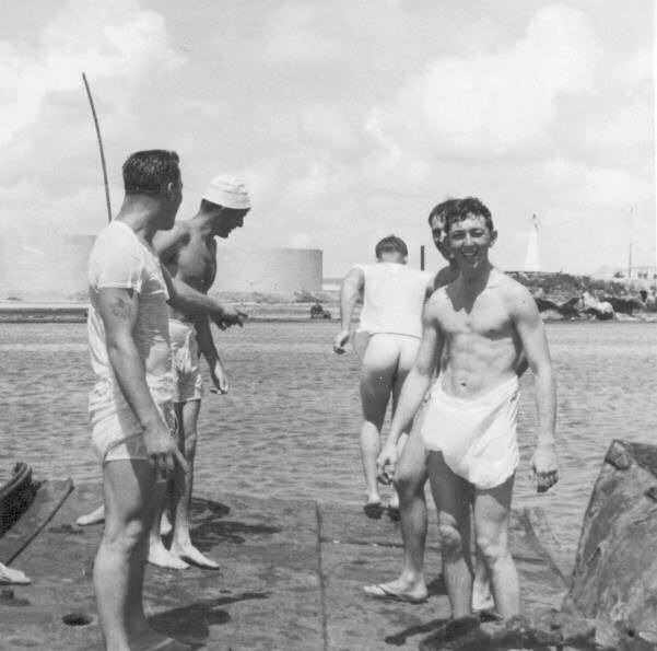 - 1st. photo from the left: April 1956 while deployed to NAF Naha Okinawa. The crew went swimming off a