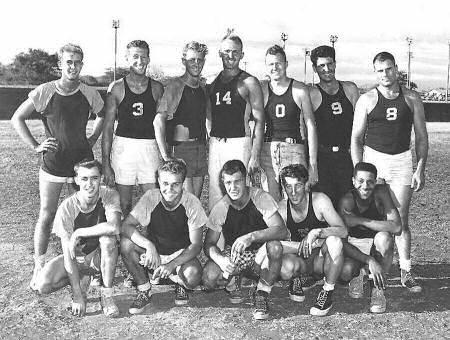 (Front row) Willie Matott, ???, Ron Brelsford, Johnny Johnson (?), Dempsey, H. Singleton, ???, "Fuzz"