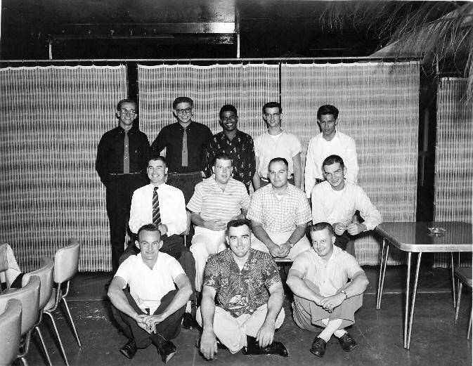 (Second row) Bill Ekblad (AT3 Radio), Tom Sparks (AL1 Radar), Dan Ragan (AT3 2nd Radio), Dick Barchafer