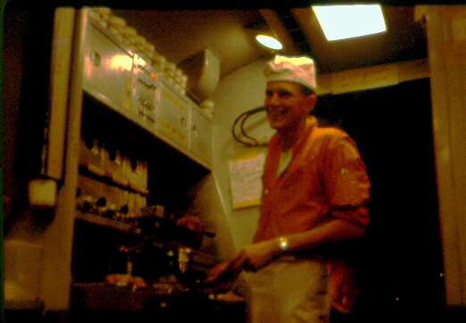 Pictured 4th. from the left: About 1965, Bud Neely AE3 flight electrician cooking meal for crew.