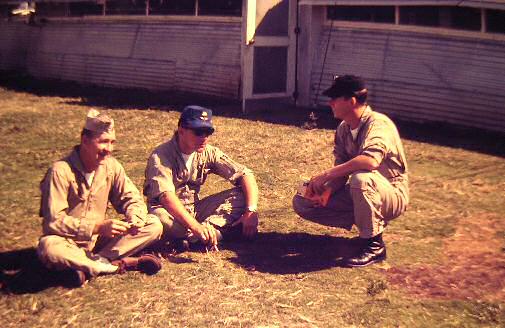 - Pictured 1st. from the left: Lt Wilson CICO, Ron Hlavaty AT3 2nd Radio, Barth AT3 CIC operator, at Sangley