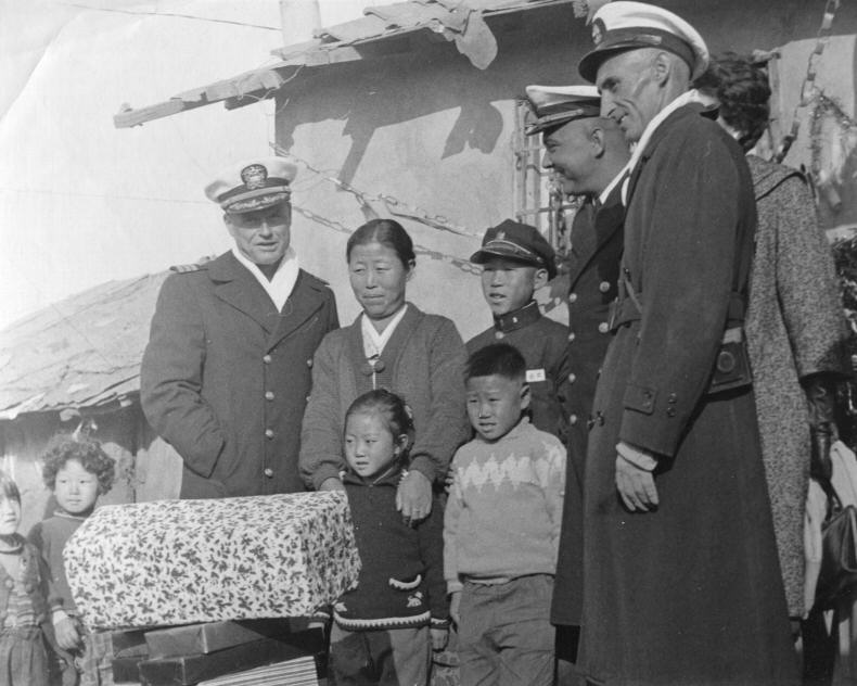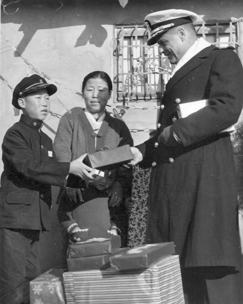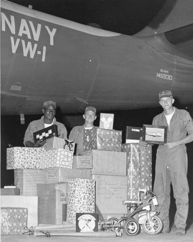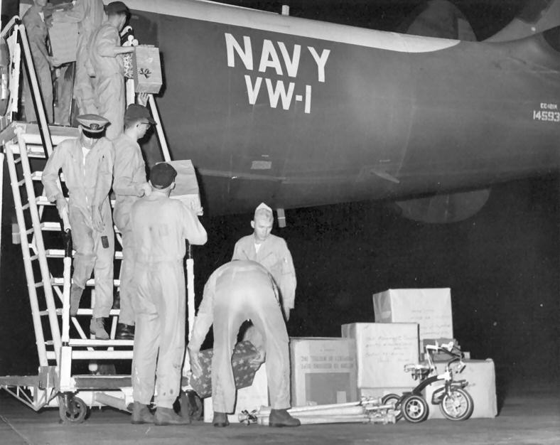 - The 1st. picture: Christmas gifts about to loaded aboard TE-6 to be delivered to VW-1's Korean adopted son