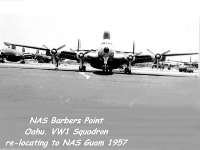 2nd picture from left: VW-1 flight line at Barber's Point just prior to the squadrons move to Guam.