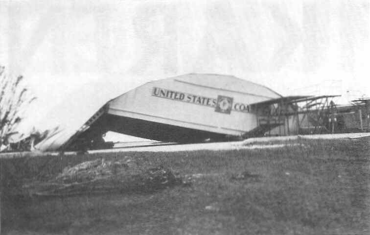 COAST GUARD HANGAR at NAS: (left) This is what was left of it after Karen's notorious passage. TYPHOON KAREN. like the man who came to dinner. Blew in uninvited to wreck havoc with this Agana lunch counter. (ComNavMar Photos)