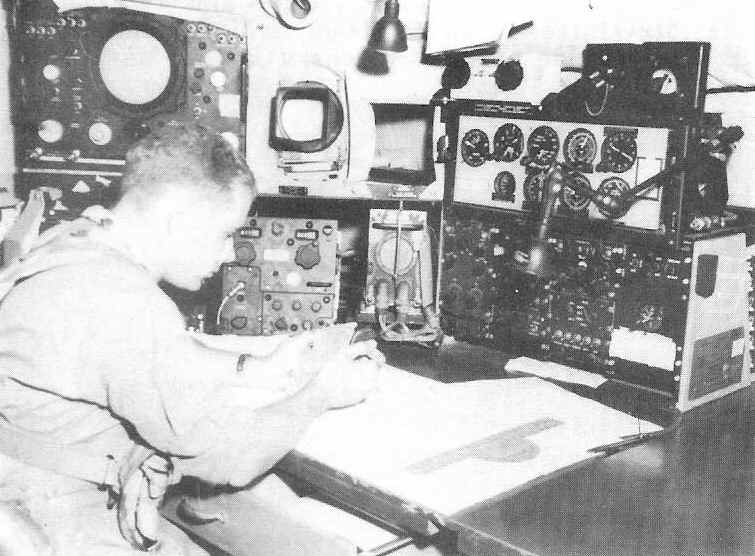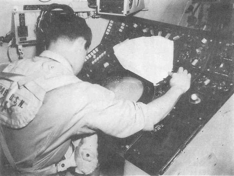 Men on the radar consoles tracked the typhoon from every direction as the aircraft circled the storm. All the information was relayed to CIC. From here, critical data was compiled such as wind velocity, direction of movement over the surface of the earth, and every other bit of information, no matter how small, which might even remotely be valuable in the future.