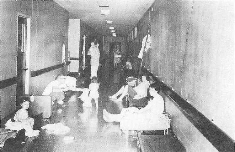 MAIN PASSAGEWAY (right) of NavHosp the day after Karen still sheltered a few of the 1,000 people who rode out the storm there. (NavHosp Photo)