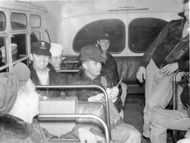- 1st. picture from left: Bus transportation from aircraft to barracks at Atsugi, Japan,