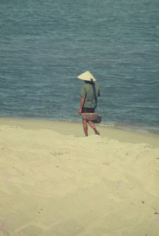 - 1st Picture on the left: Vietnamese fisherman walking on the beach just outside the perimeter wire.