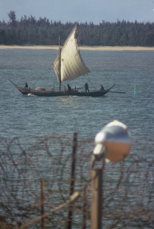 2nd. picture from the left: Looking at a Vietnamese fishing boat over the perimeter wire