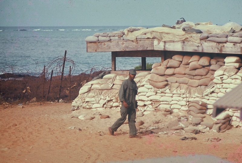 Pictured 3rd. from the left is Jon Persson making sure he has a spot inside the bunker in Chu-Lai. 1968
