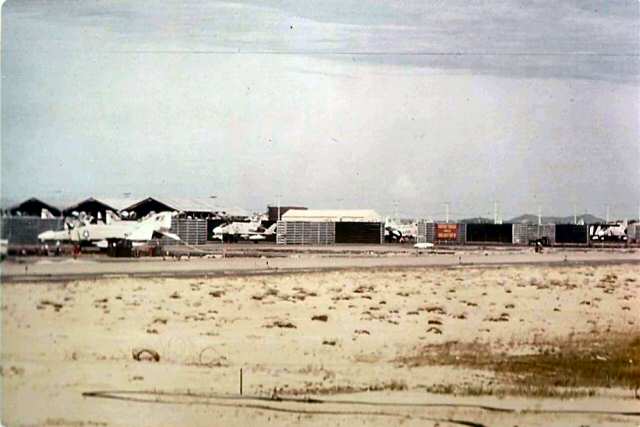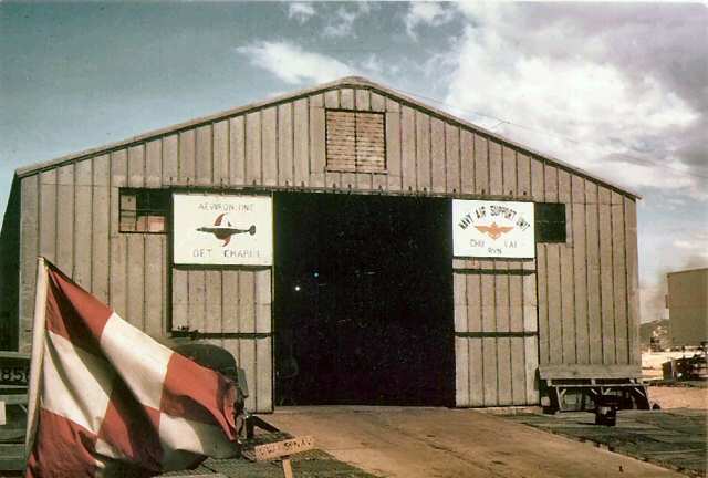 Pictured 2nd. from the left: DET C was between the Marine hangers (shown here) and the hills from which