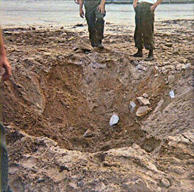 - Pictured 1st. from the left: This rocket crater was just about 10 yards away from our bunker in Feb 1968, I
