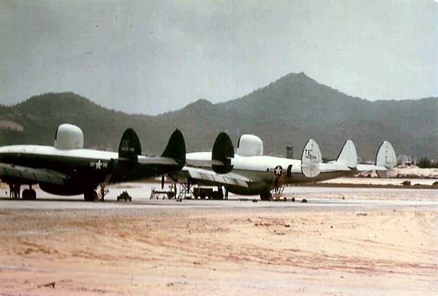 Pictured 2nd. from the left: 4 connies on the Chu Lai flight line the only side numbers that can be read are