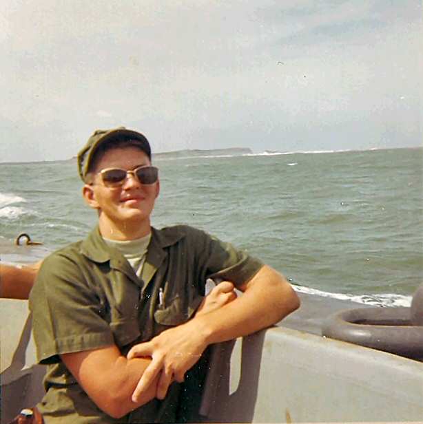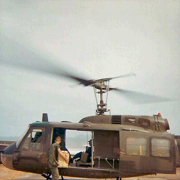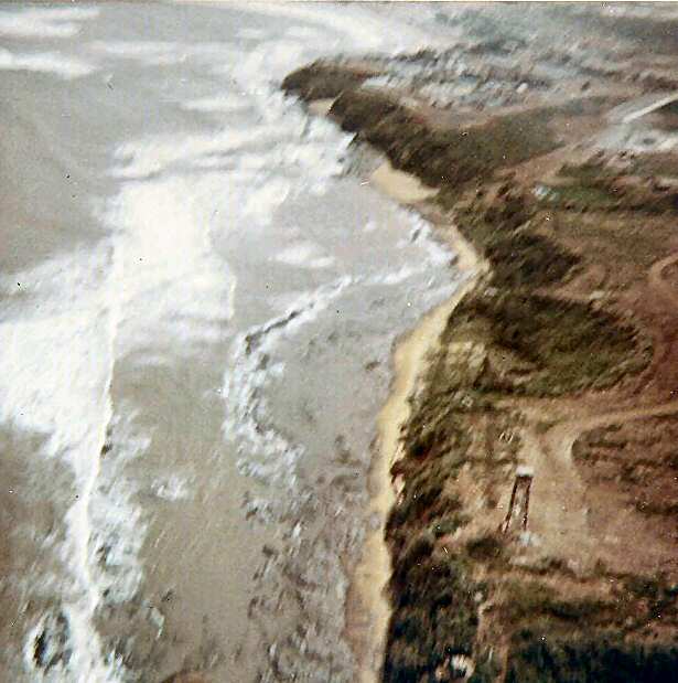 Pictured 3rd. from the left: The coast of Chu Lai, Viet Nam from our Huey en route to the USS Repose. They